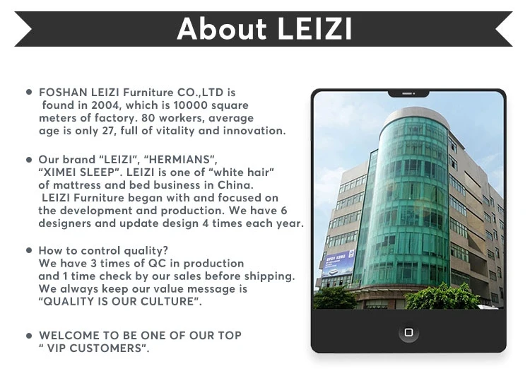 We mainly produce and sale mattresses, beds, nightstands, pillows and sofas etc.. And the most competitive product is mattress. There are four main brands: Ximei Sleep, LEIZI, HERMIANS and NAPNICE. LEIZI Furniture as an manufacturing factory provides OEM and